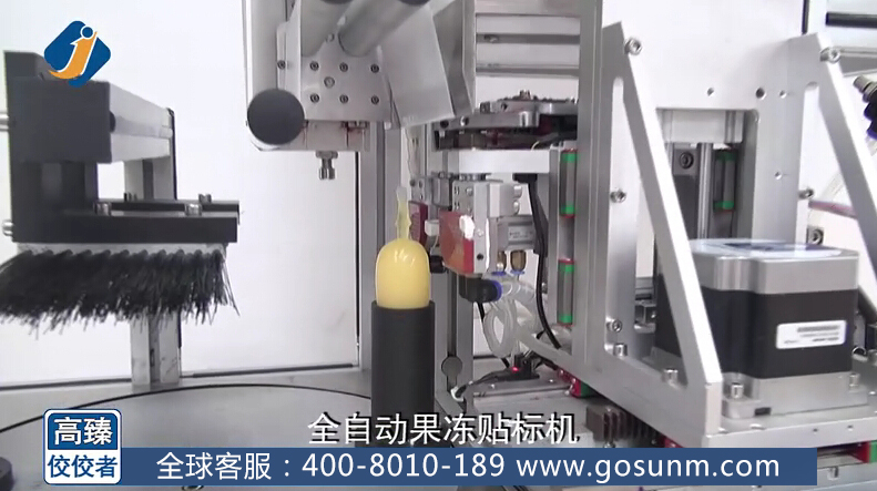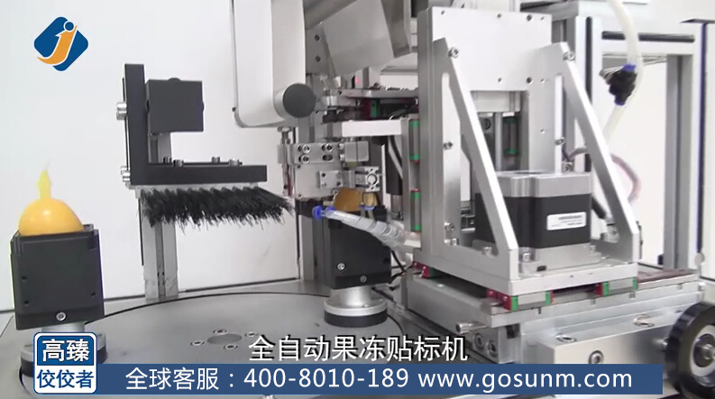 我想很多人小時(shí)候甚至現(xiàn)在都很喜歡吃果凍吧,那種又甜又滑的感覺讓人愛不釋手,果凍的包裝更是各式各樣,隨著市場需求的迅速擴(kuò)大,果凍行業(yè)逐步形成產(chǎn)業(yè),不少生產(chǎn)廠家都在尋找果凍貼標(biāo)機(jī),那么,接下來讓我在這里為大家介紹我們高臻機(jī)械公司一款果凍貼標(biāo)機(jī),也叫全自動(dòng)果凍貼標(biāo)機(jī),先來看看他的整體大圖:
