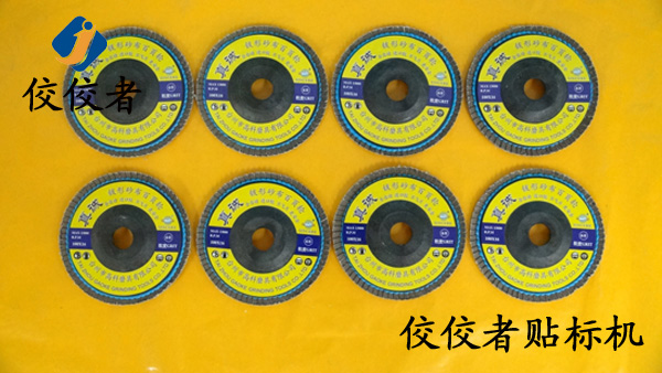 我們來一起欣賞下這臺全自動砂輪片貼標(biāo)機(jī)的貼標(biāo)樣品: