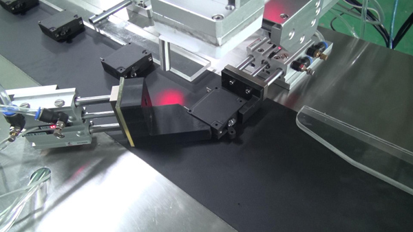 2、測物電眼感應(yīng)到產(chǎn)品,氣缸將產(chǎn)品推送至一邊,將產(chǎn)品定位。